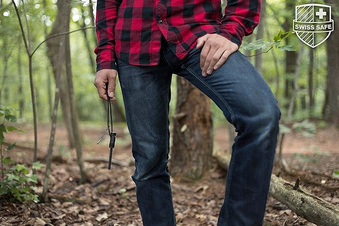 - All-in-One Survival Tool: Beyond its primary fire-starting feature, it incorporates a precision compass for navigation, a 150dB whistle for emergency signaling, a robust steel scraper, and a 450 LB 8-core paracord for any situation & rod.