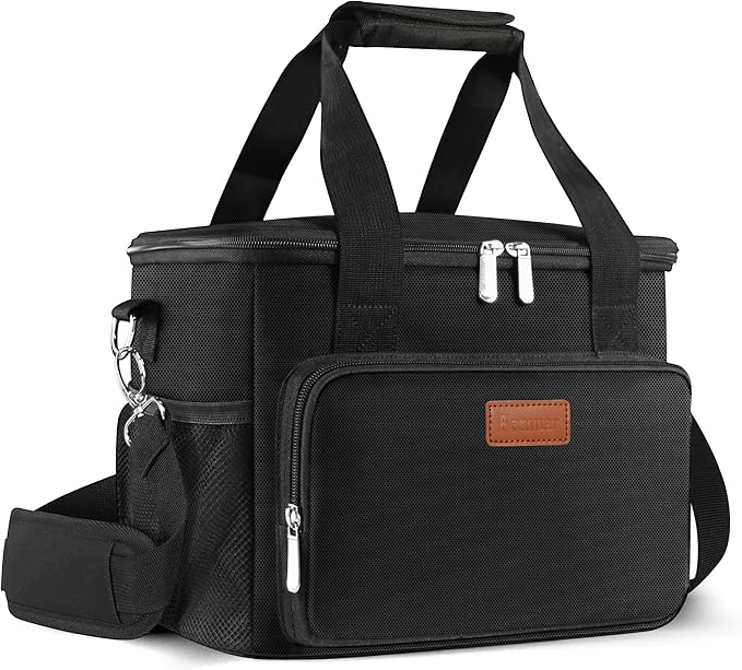 Femuar Lunch Bags for Women/Men, Insulated Lunch Bag for Work Office Picnic - Large Lunch Cooler Bag Leakproof Lunch Box with Adjustable Shoulder Strap for Adults - Black(15L)