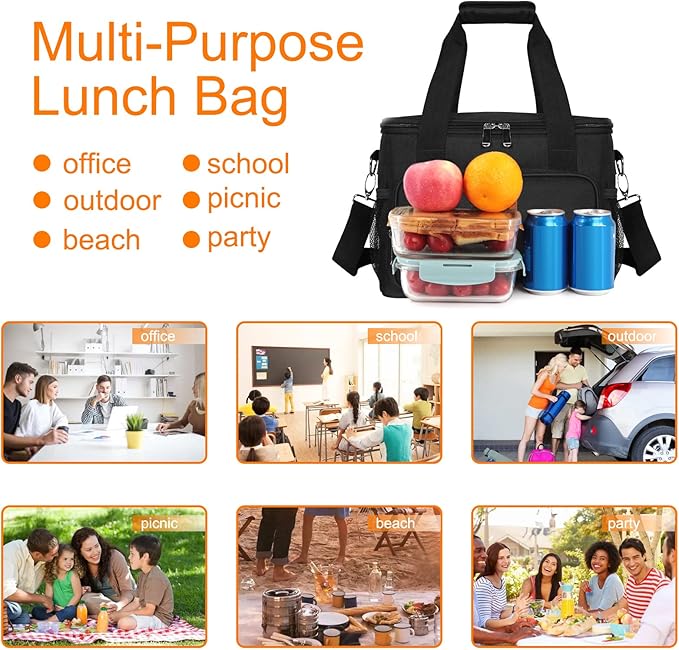 - 【MULTI-USE & CONVENIENT】 -- Insulated lunch box for men and women to pack food and drinks for work, office, picnics, beach, road trips, camping, hiking, BBQs, traveling or any outdoor activities. Unisex design of our lunch tote bag is perfect for adults teens as Mother’s Day and Father’s Day, Thanksgiving and Christmas Day Gifts(The minimum age for use of our products is over 12 years old).