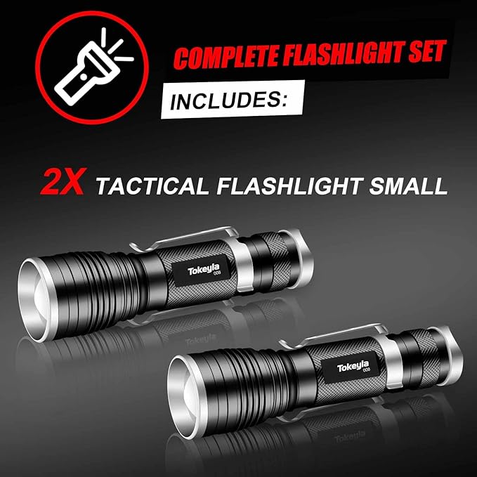 - 【Package included 2 flashlights super bright】Exceptional value for 2 flashlights powerful with good quality and longevity.Great for your car or you bag to go out,or for house store.Also a unique and practical idea to your family or friends.