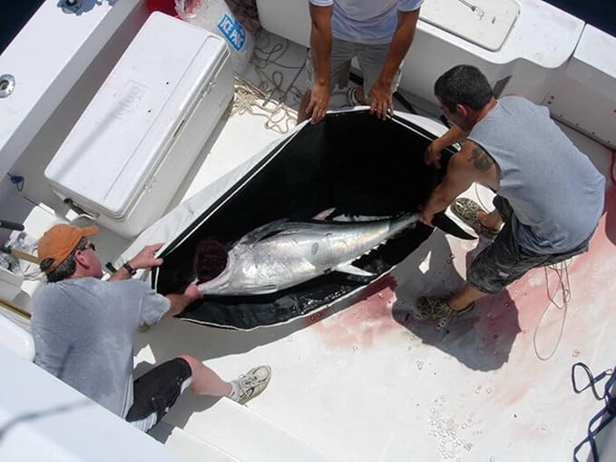 - PORTABLE & LIGHTWEIGHT: Buffalo Gear Monster Fish Bag is made of high-quality handcraft, with thick walls, YKK Zipper and strong straps. Comes with a snap strap that secures the folded fishing bag for easy portability or takes up less space for storage when not in use instead of a large and bulky cooler