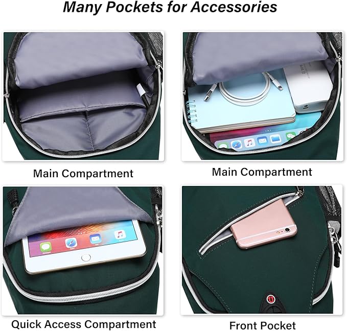 • An earphone hole on the front pocket enables you to enjoy music easily. Meanwhile the breathable shaped padded shoulder strap and back panel is extremely comfortable and lightweight, which will release heat rather than accumulate. Made of soft polyester material with gliding smoothly zippers and strap clip, allows you convenient access to your stuff.