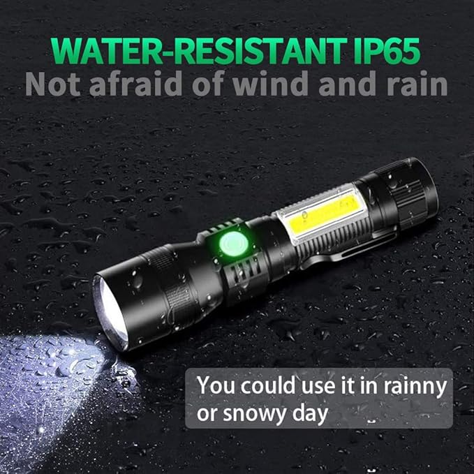 - 🔦【IP65 Waterproof, Anti-drop Belt Clip】: No problem to use in wet, heavy rain or snow (note that it cannot be completely immersed). With Belt Clip anti-drop design, it is not easy to fall when running. and it is made of dur-able aluminum alloy, Will not be damaged even if dropped. Applicable for everyday use, home backup, line repair, patrol, outdoor mountaineering, night fishing, natural disaster emergency, and rescue.