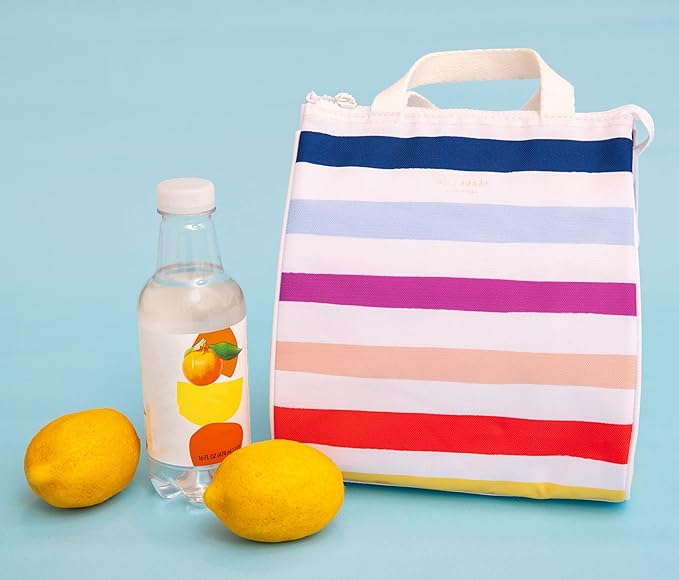 kate spade new york Portable Soft Cooler Lunch Bag, Thermal Tote with Insulated Interior Lining and Storage Pocket, Lunch Tote for Women, Candy Stripe