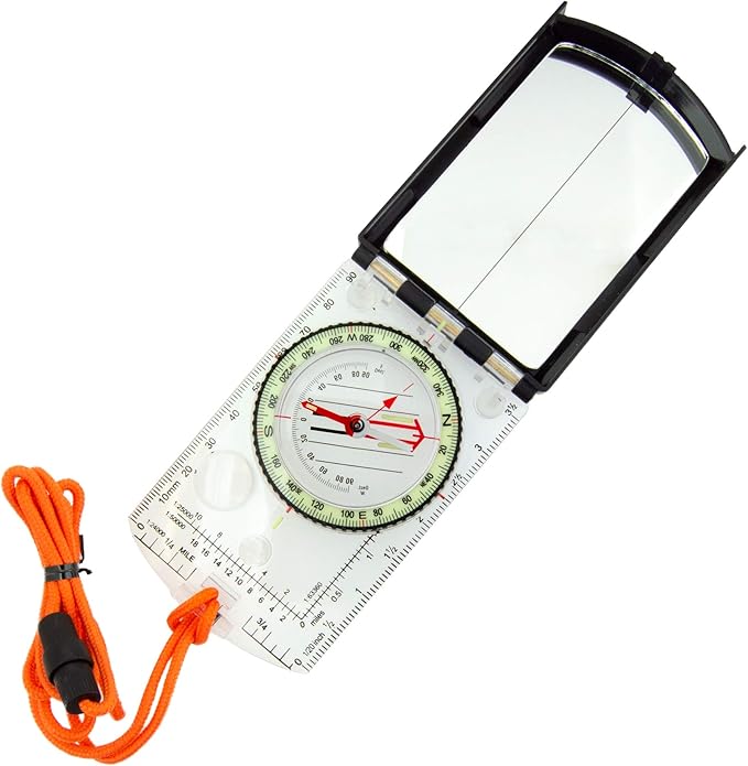 - Sighting Mirror & Protective Cover - Cover keeps the compass safe from damage. Open up the folding cover to reveal a full-sized sighting mirror. Great for military, surveying, bushcraft, and scouting applications.