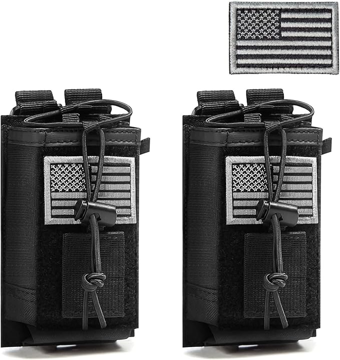 2 Pack Tactical Radio Holder Radio Case Molle Radio Holster Military Heavy Duty Radios Pouch Bag for Two Ways Walkie Talkies Adjustable Storage with 3 Pack Patch