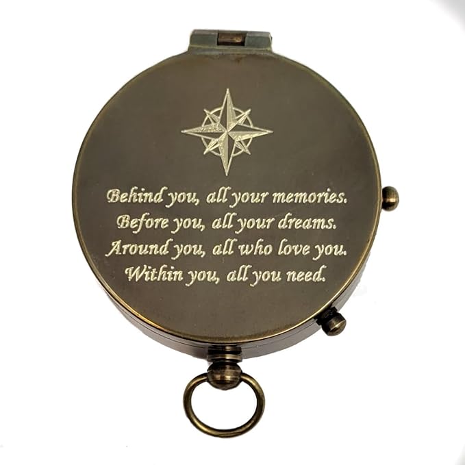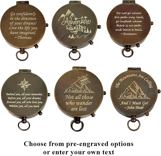 - CUSTOM ENGRAVABLE COMPASS AND BOX - The compass lid has your own customized text or pick from our pre-engraved template options. Personalize the inside lid with the recipient's name, a date, the achievement, and/or your own message. A hardwood box with custom plaque can be ordered as well.