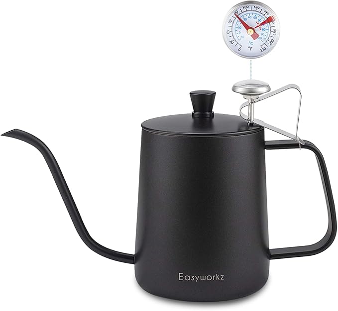 Easyworkz Gage Gooseneck Pour Over Coffee Kettle 20 oz with Thermometer Stainless Steel Hand Drip Coffee Pot With Long Narrow Spout