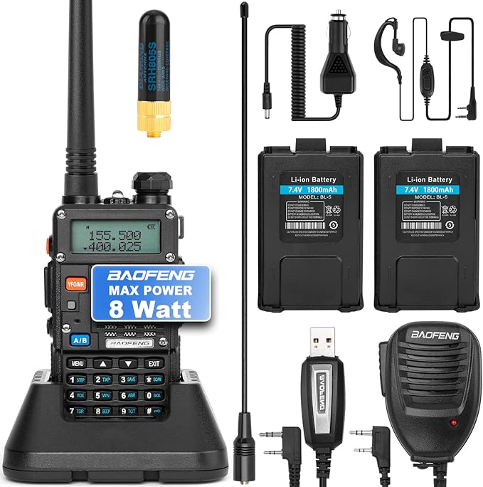BaoFeng UV-5R 8-Watt (3rd Gen) Handheld Ham Radio with 2 Rechargeable Battery, Dual-Band 2-Way Radio Handheld Walkie Talkies Complete Set with Earpiece and Programming Cable (Pack 1)