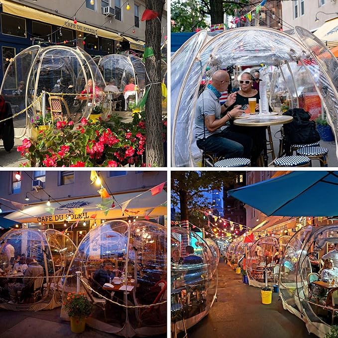 - SPACIOUS AND WARM: Alvantor big bubble gazebo provides a spacious interior shelter that comfortably fits between two and three adults. Enough room to place various pieces of furniture so you can give your bubble tent a homely feeling. The four, transparent PVC windows provide 360° view of your surroundings, whilst the inside of your bubble tent stays warm thanks to the excellent heat retention.