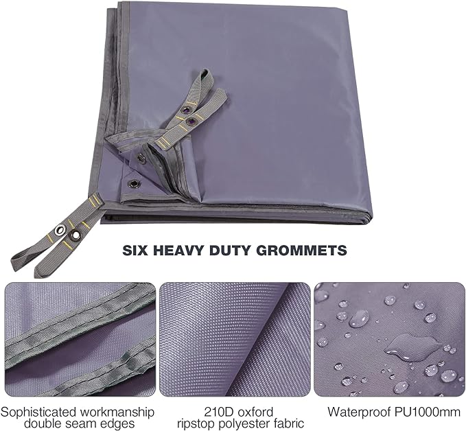 - Reinforced: Tent footprint is equipped with 6 rust proof grommets. Double layer corner tech and heavy duty security stiching to ensure strength and superior quality