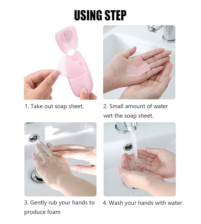 - Using Step: 1. Take out soap sheet 2. Small amount of water wet the soap sheet 3. Gently rub your hands to produce foam 4. Wash your hands with water.