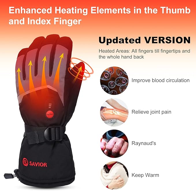 SAVIOR HEAT Heated Gloves Electric Rechargeable Battery Men Women 7.4V Heating Gloves Ski Motorcycle Work Snowboarding Hunting Hiking Camping Walking Arthritis Hands