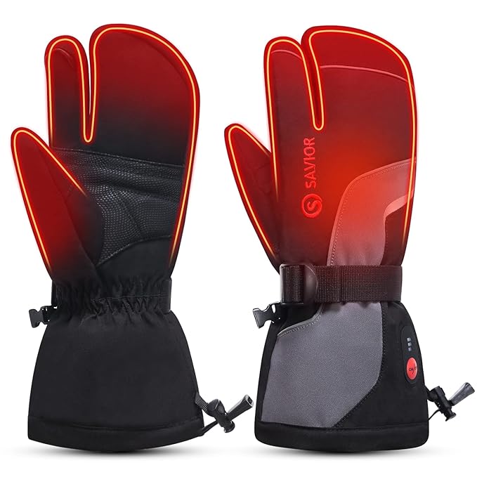 - 【Flexible 3-Fingered Gloves & Touchscreen】 3-fingered heated gloves help you flexible gripping items well, 2021's latest sensitive touch screen material on the men’s heated gloves’ thumb, you can freely use tablets, mobile phones without removing the heated ski mittens; The thermal winter gloves are perfect for skiing, snowboardin, snowmobiling, hunting, ice fishing, motorcycle, cycling, shoveling, working outside and anyone who suffers Raynaud's, bad circulation, arthritis and stiff joints.