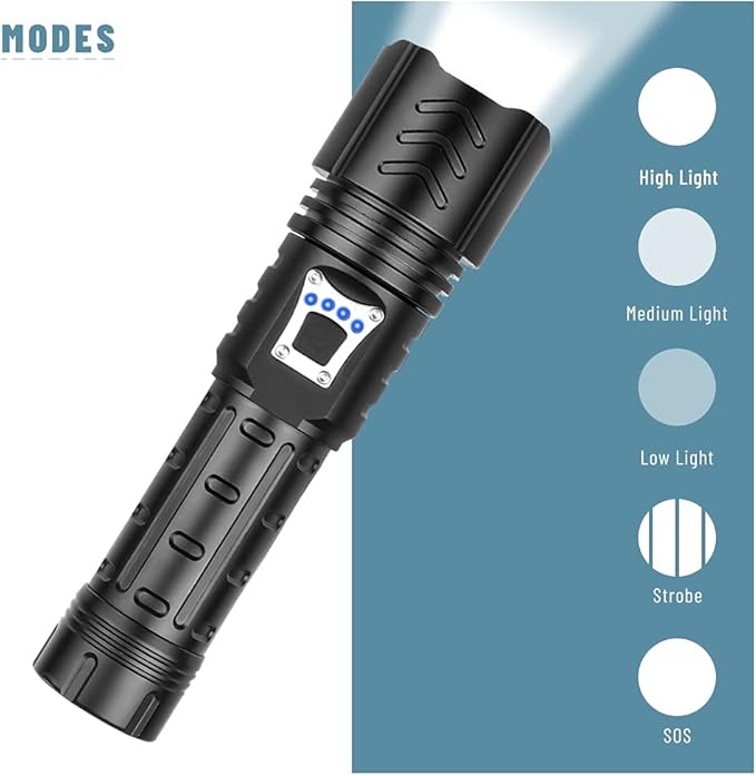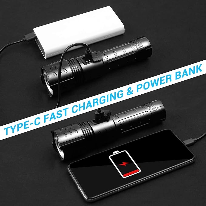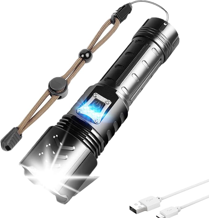 BESTSUN LED XHP90 Flashlight, 20000 Lumens XHP90 Tactical Handheld Flashlights Powerful Rechargeable XHP90 LED Torch 5 Modes Adjustable Zoomable Waterproof Lamp for Hiking Camping Hunting