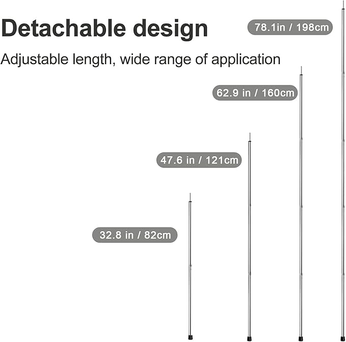 - Strong support- as a new generation of upgraded tarpaulin poles, with a diameter of 19MM and a thickened heavy-duty design, it is sturdy and has a strong load-bearing capacity, which greatly improves the resistance to wind and rain and is not easy to tilt and collapse during use.