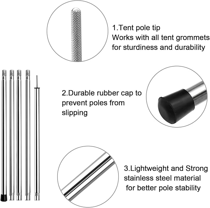 - Sturdy And Durable Tent Pole- KOMCLUB tarp pole is made of strong and durable stainless steel material, fine workmanship, anti-corrosion and anti-rust. suitable for all types of tent tarps , but also can be used for canopy shelter beach tent shade and can be used as an umbrella pole, etc.