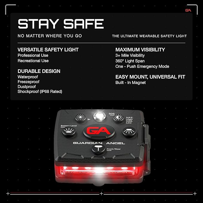 - ๐๐ฒ๐ ๐๐ผ๐บ๐ฒ ๐ฆ๐ฎ๐ณ๐ฒ: Each detail in the GA Micro Series hands-free, wearable, multi-mountable safety light was designed with your safety in mind. Featuring professional-grade construction & lighting on all sides thatโs visible for miles, the Micro keeps you safe and doubles as a hands-free work light. Organizations and outdoor enthusiasts in the US and around the world trust the Micro Series to keep them and their families visible and safe in any situation. Measures 5.05 x 4.37 x 1.73 cm.