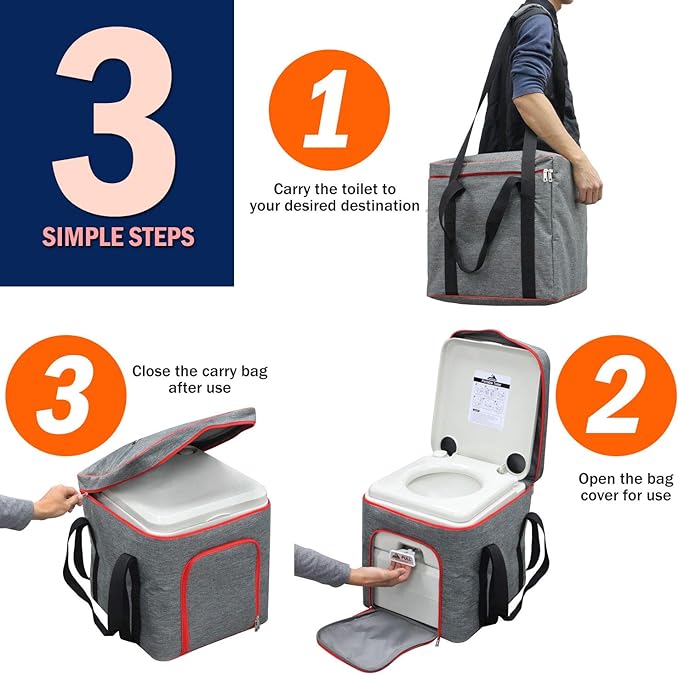 - CARRY BAG INCLUDED: To increase portability while traveling, we have included a customized carry bag that will allow you to fit the toilet and carry it in a convenient way.