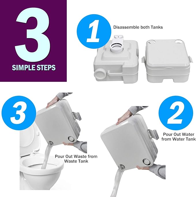 - EASY TO CLEAN - Comes with a detachable waste holding tank to make it even more convenient to empty and clean. No tools required since both tanks are a one-piece construction. Simply detach and clean.
