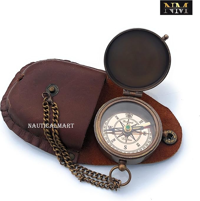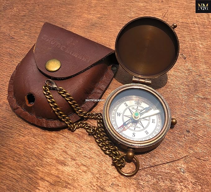 - Navigate your Hiking/Camping:- Brass compass with chain and Leather Storage Case Each compass is individually crafted and carefully packaged. Its antique finish enhances your home décor, study room decoration, office desks and more. It gives a classy and elegant touch to your space. It is made of premium quality solid brass that makes it long lasting for years.