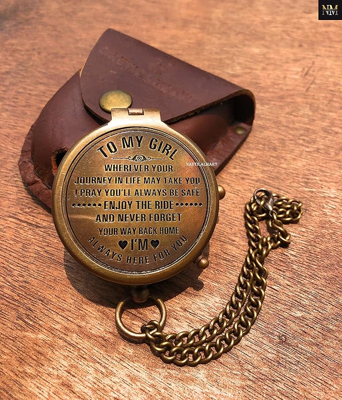 - Vintage Navigation Compass::- Premium quality handcrafted brass compass and leather case. Engraved Brass compass to My Son Compass/Father to Son Gifts/Mother to Son Gift/To My Brother / To My Sister/ Inspirational Gift. The high-quality jewelled compass needle settles to north very quickly for well-timed and accurate reading. This Compass Provides Accurate directional assistance. this compass can also be used for Camping, Hiking or Adventure Traveling.