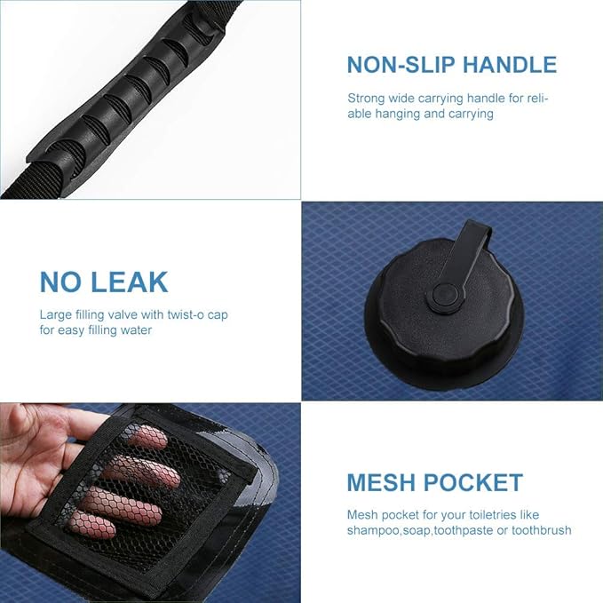 • 【High Water Capacity】This camping shower bag can carry up to 5 gallons/20L water for showering outdoor, let you enjoy a better and refreshing shower anywhere. In addition, our portable shower bag is so compact and lightweight that you can carry it in luggage, backpack or car trunk conveniently.
