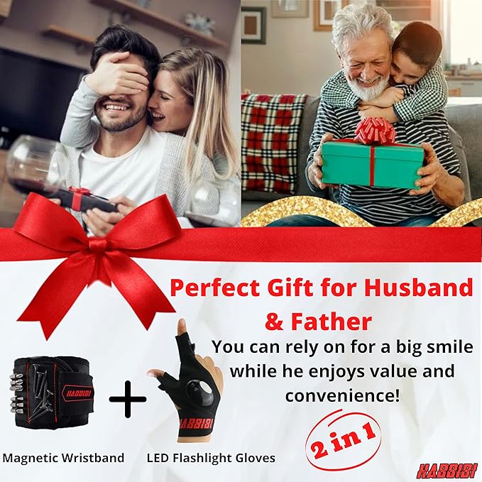 - The LED flashlight gloves give you more freedom to focus on work. The waterproof led gloves with a led flashlight on each hand illuminate for you and work comfortably. With personalized gifts package, it's perfect gifts for men, women, dad/stepdad/fathers, mom, guys, grandpa, grandma, husband, boyfriend, brother, son on Father's Day, Thanksgiving gifts, Christmas