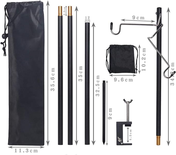 - Package contain:4-section poles,1 stake,2 light hooks,1 screw clamp;the lantern hanger came in several pieces,and you can easily install it with threaded interface,2.8 feet 3.9 feet 5 feet three height to meet your different need;