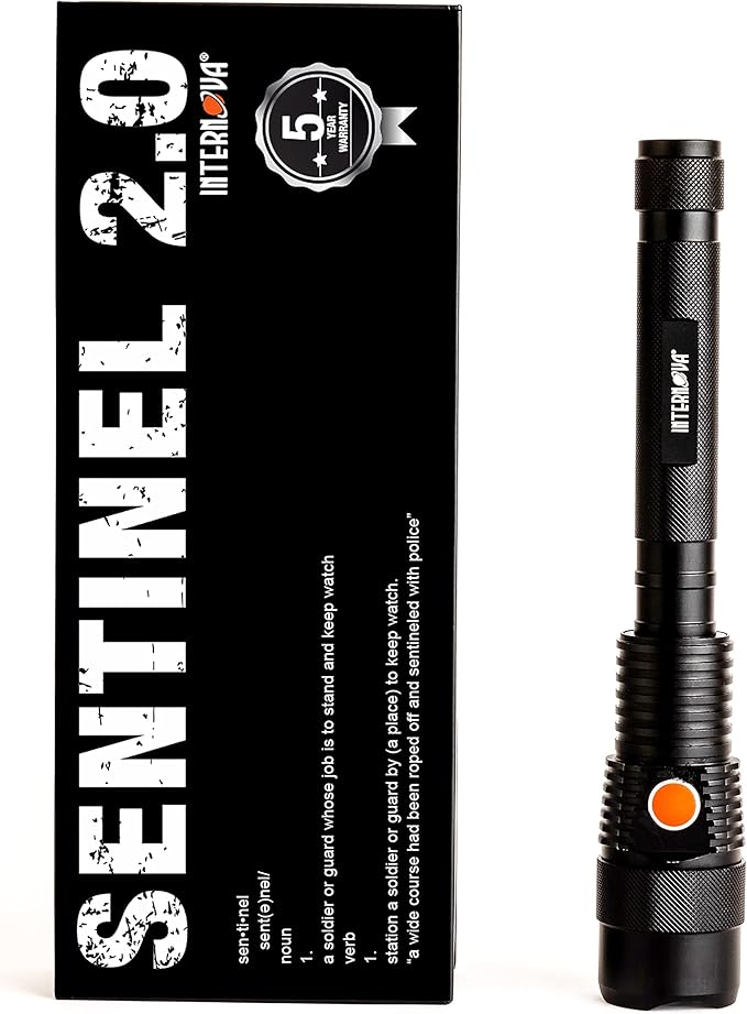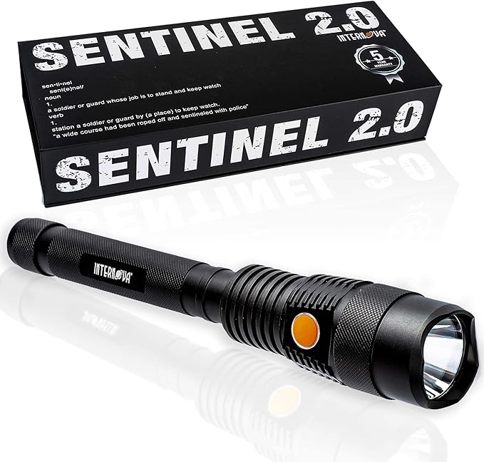 - Never Be Afraid of the Dark Again - Confidently navigate your way through the darkness with the Sentinel 2.0 flashlight. The intensity of the Ultra-Bright LED bulb generates a blazing brightness and a larger area of focus essential for police and military professionals. A stunning lighting distance of 336 meters (about 3 football fields), puts the spotlight on outdoor adventures whether you are camping, biking, hunting, hiking, or fishing.