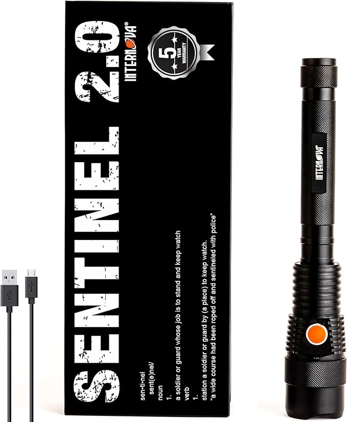 INTERNOVA® Sentinel 2000 Lumen Rechargeable Flashlight 10.5 Inches - LED Flashlight includes USB Cord & Magnetic Sealed Gift Box