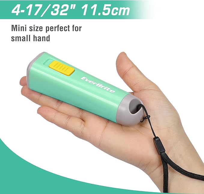 EverBrite Kids Flashlight, Mini LED Flashlight, Plastic Torch Use for Emergencies, Camping, Outdoor with Lanyard 3AAA Battery Included, Green