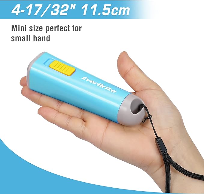 EverBrite Kids Flashlight, Mini LED Flashlight, Plastic Torch Use for Emergencies, Camping, Outdoor with Lanyard 3AAA Battery Included, Blue