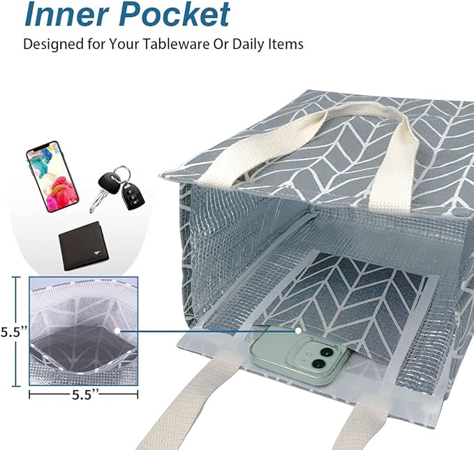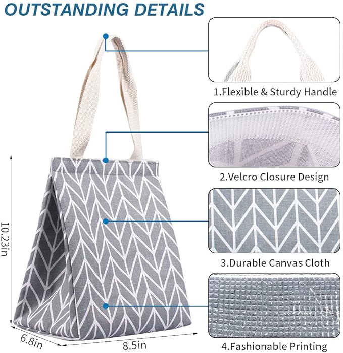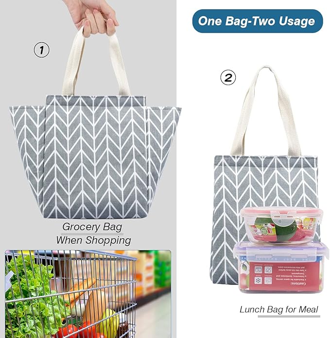 - ❤INSULATED & FOOD-GRADE MATERIAL: The reusable lunch tote bags are constituted with oxford cloth and aluminum foil, which is known for its excellent air isolation and temperature retaining, keeping your food cold/warm for hours. Tight stitching without tearing, and sturdy. Can Keeps your food warm or cold for hours well.