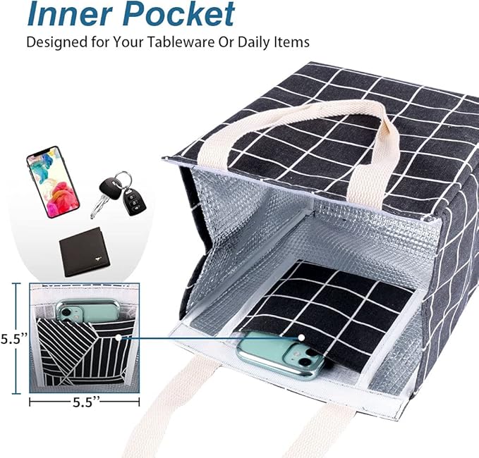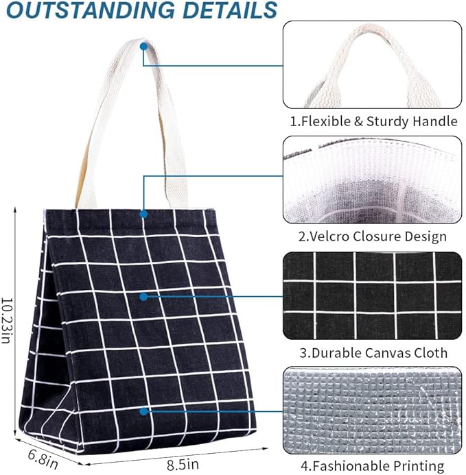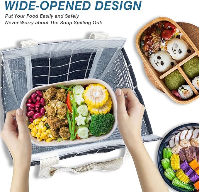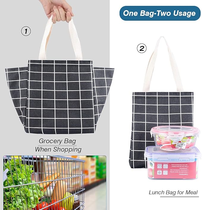 - ❤INSULATED & FOOD-GRADE MATERIAL: The reusable lunch tote bags are constituted with oxford cloth and aluminum foil, which is known for its excellent air isolation and temperature retaining, keeping your food cold/warm for hours. Tight stitching without tearing, sturdy. Can Keeps your food warm or cold for hours well.