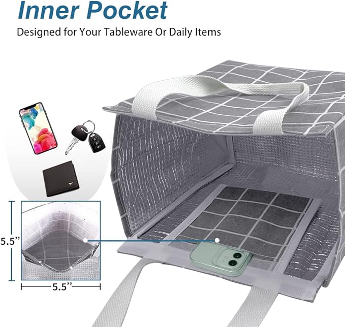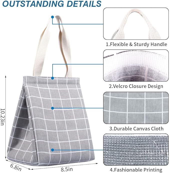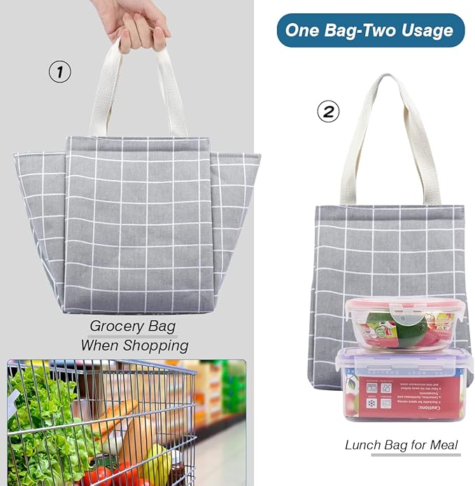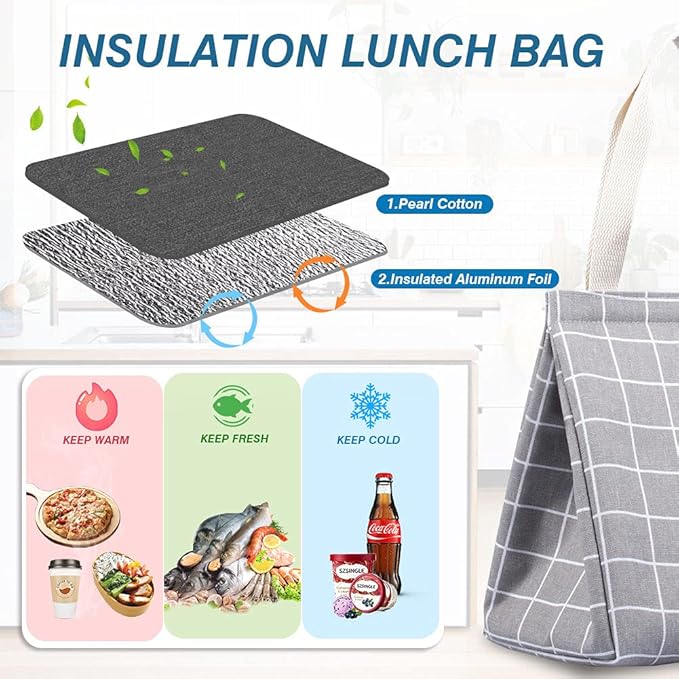- ❤INSULATED & FOOD-GRADE MATERIAL: The reusable lunch tote bags are constituted with oxford cloth and aluminum foil, which is known for its excellent air isolation and temperature retaining, keeping your food cold/warm for hours. Tight stitching without tearing, sturdy. Can Keeps your food warm or cold for hours well.
