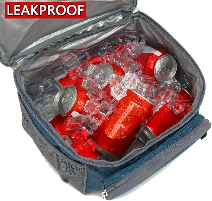 FlowFly Double Layer Cooler Insulated Lunch Bag Adult Lunch Box Large Tote Bag for Men, Women, With Adjustable Strap,Front Pocket and Dual Large Mesh Side Pockets