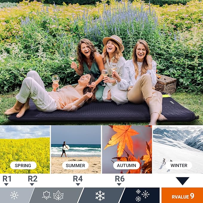 - 【19X High Rebound Support】The self inflating sleeping pad for camping features 1.96 inch thick and 19 times high rebound foam, provides you and you lover superior back support and high R-Value to insulate against the cold ground. Camping mattress pad wide and long foam ensures enough coverage under your body. Offer optimal comfort and warmth your body needs for getting a good night's rest.