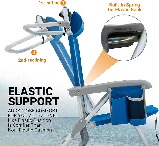 - EASY FOLDING BEACH CHAIR: No assembly required easy to fold and open up in seconds. This sand chair foldable to compact size for storage. The shoulder straps & rubber carry handle for added convenience, perfect reclining beach chair for travel.