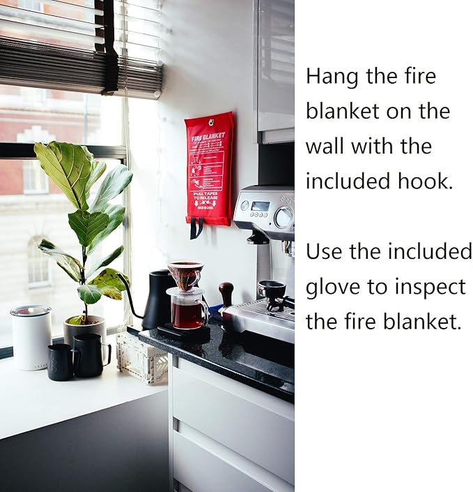 - EASY TO USE: Simply pull down the fire blanket kitchen, spread the blanket to put out fire. Let the emergency fire blanket sit there for few seconds to suffocate the fire. Turn off the stove or any heat source. Each Fire blanket kit comes with hook and glove. Hang the fire blankets for people on the wall.