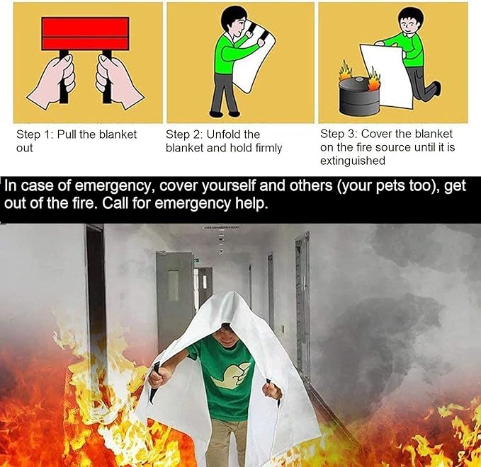- SURVIVAL FIRE BLANKETS: Fire retardant blanket can be used to cover fire without mess from fire extinguishers. Fire retardant blankets stops fire by cutting off oxygen supply. No matter the fire is from grease in kitchen, or electricity shortage. A must have in your house fire safety kit and car survival kit for protection.