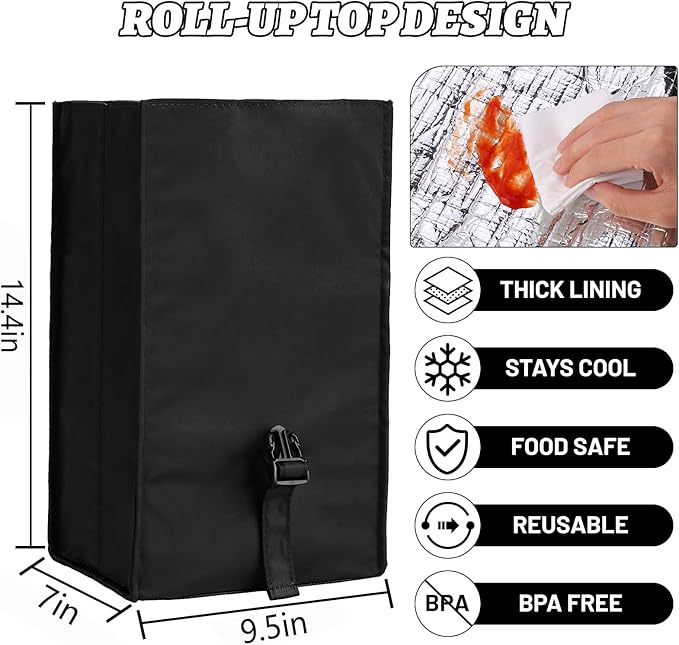 - 1. Insulated: This lunch bag is designed to keep your food fresh and at the perfect temperature all day long thanks to its excellent aluminium thermal insulation.