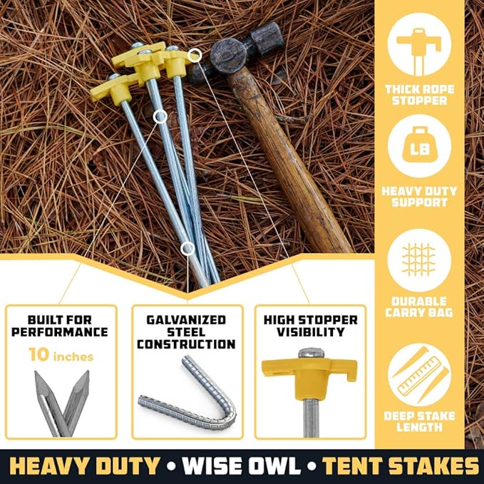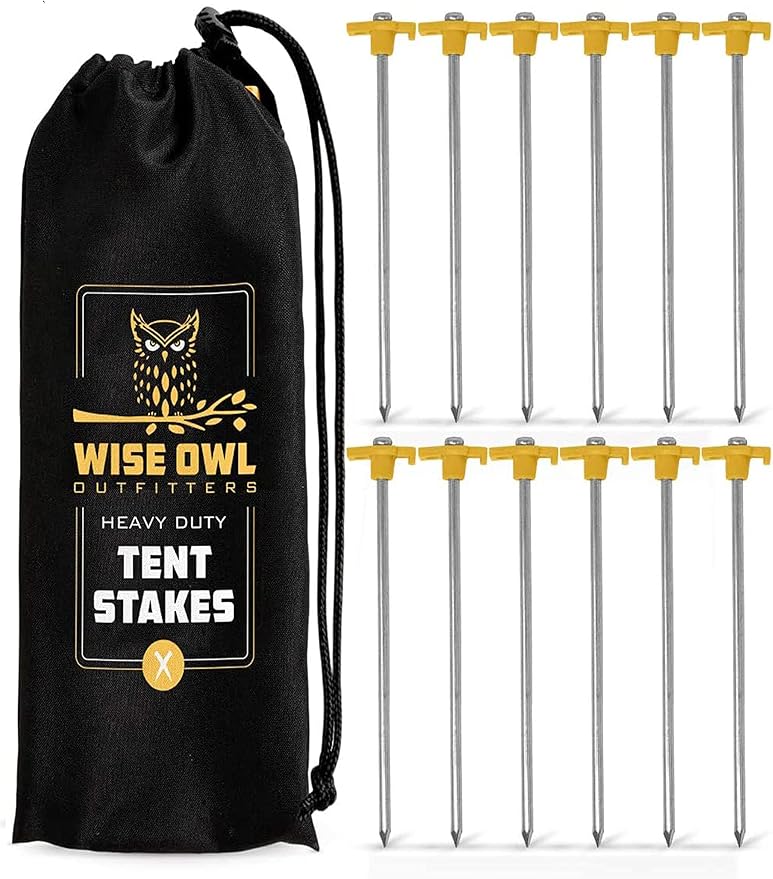 Wise Owl Outfitters Tent Stakes - Heavy Duty Camping Stakes for Outdoor Tent & Tarp - Essential Camping Accessories, Available in 12pk or 16pk