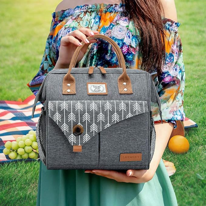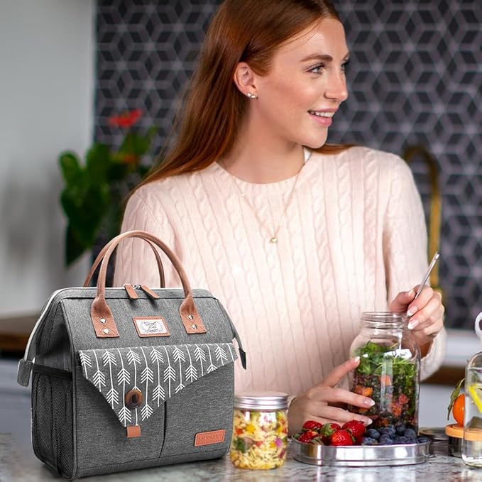 Lekesky Lunch Bag for Women Insulated Lunch Box Leakproof Lunchbox for Adult Work, Grey