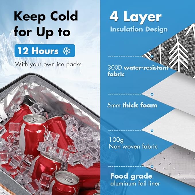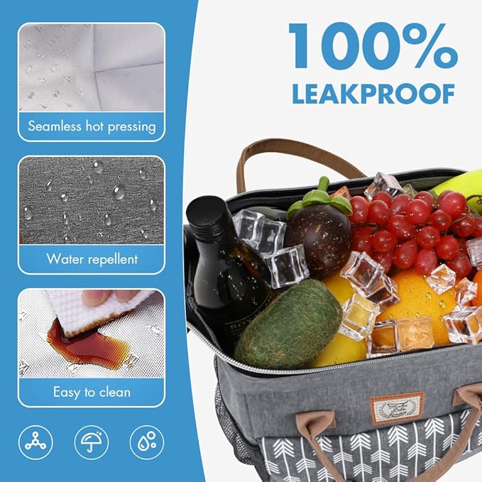 - Lightweight and Leakproof Lunch Bag: Weighting 360g, this lunch cooler bag is made of water resistant fabric for easy cleaning while heat-welded seams to guard against leaks.