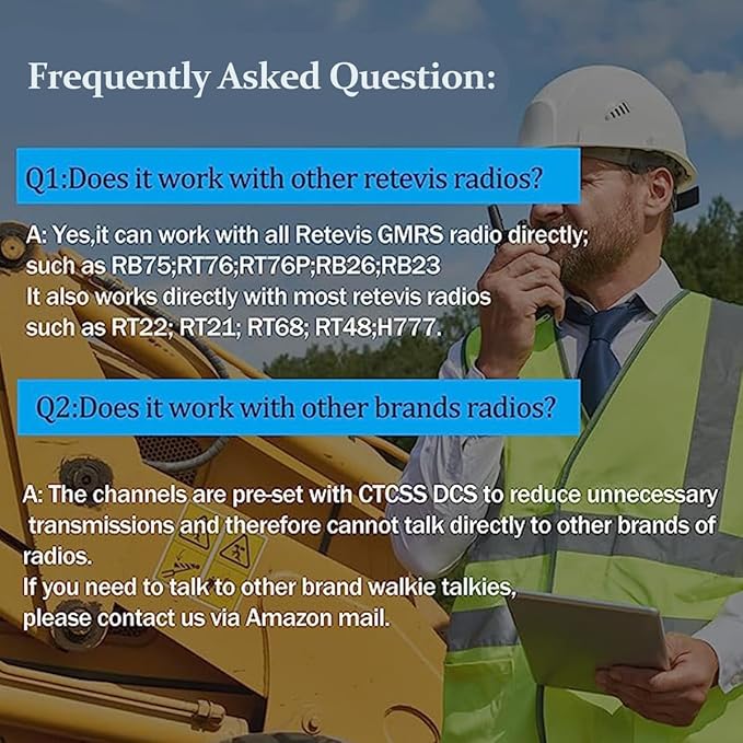 - RB75 high power walkie talkies are specifically designed for large commercial environments; channels are pre-set with CTCSS DCS to reduce unnecessary transmissions and therefore cannot talk directly to other brands of radios; if you need to talk to other brand walkie talkies; please contact us via Amazon mail; we will offer firmware for you