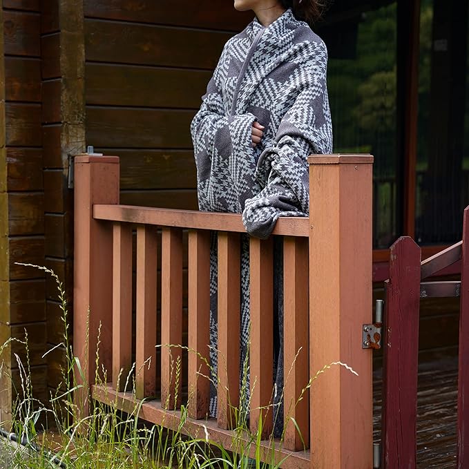 PuTian Merino Wool Blanket - 87" x 63" Thick Warm Soft Large Bed Throw - Great for Camping, Outdoors, Travel, Car, Couch, All Seasons Houndstooth Grey