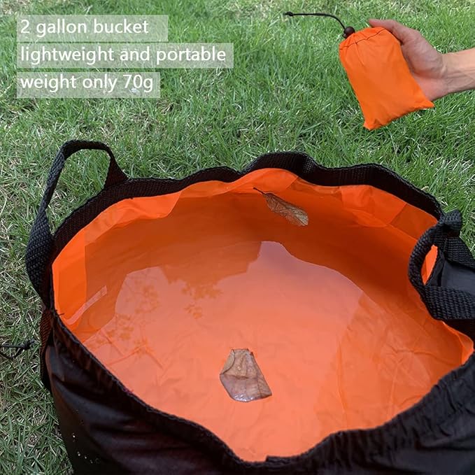 2-Pack Collapsible Bucket with Handle 2 Gallon Portable Camping Wash Basin Folding Water Container for Fishing Beach
