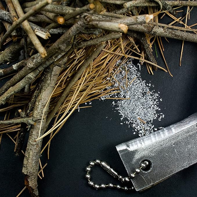 - 🔥EASY TO SAVE-The size (3" x 1.2" x 3/8" magnesium fire starter with attached ball chain) is small, easy to keep in your bag.