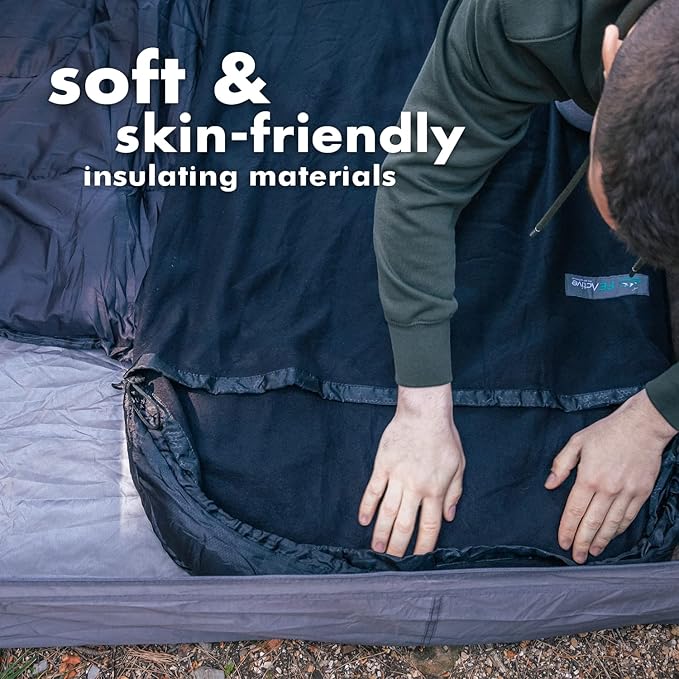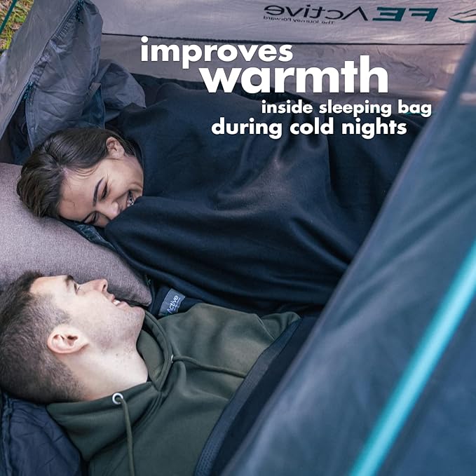 - CONSTRUCTION: FE Active’s fleece sleeping bag liner is designed of soft and skin-friendly insulating materials. Its drawstring hood provides major protection and comfort while adventuring. This bivy sack is ideal for family camping trips. The Vernon outdoor blanket's length is the perfect fit for adults and children. The liner has a high-grade dual slider zipper that allows to be opened and closed from the inside and the outside. The Vernon is the perfect product for world travelers